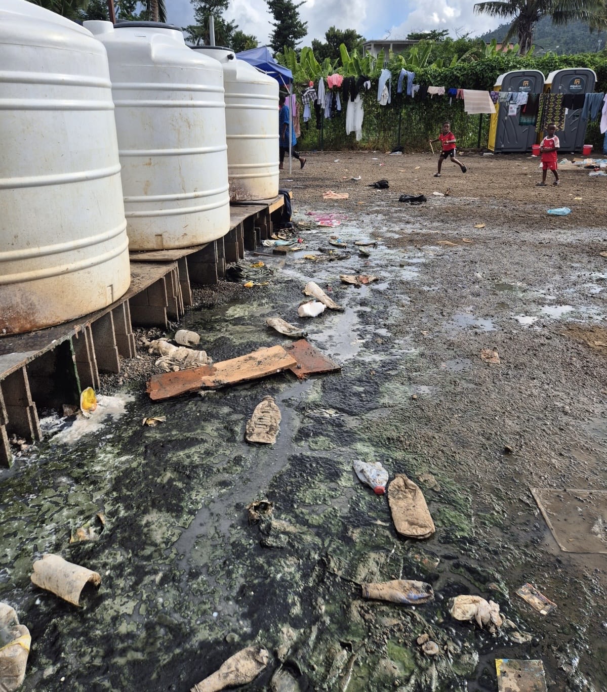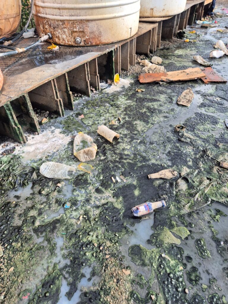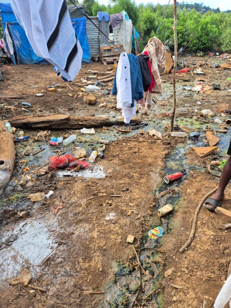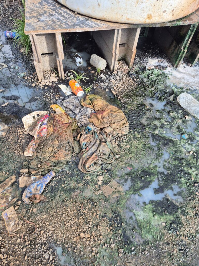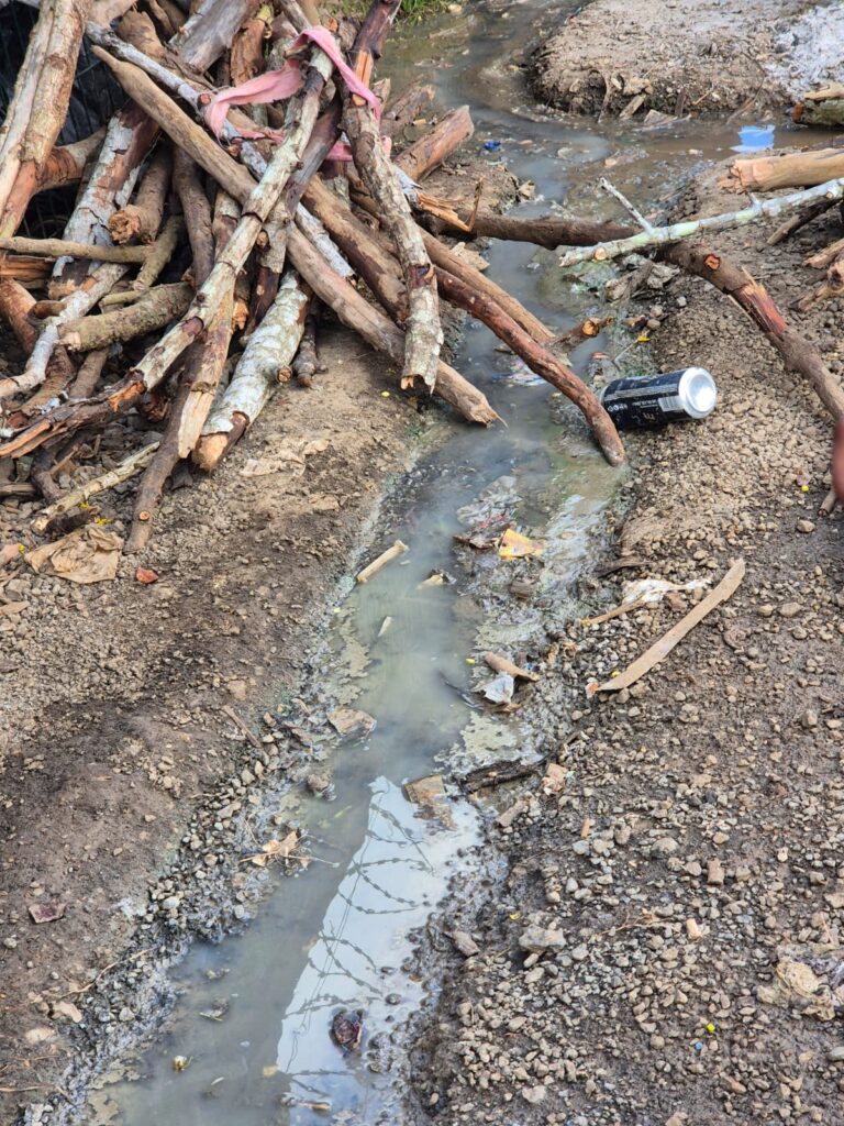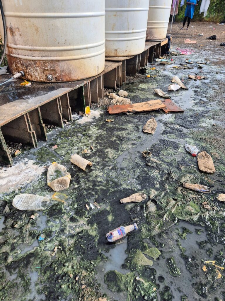 Autour des installations d’eau, la situation apparaît particulièrement préoccupante : des fuites et écoulements permanents transforment le sol en boue polluée, favorisant la prolifération de bactéries. Ces conditions soulèvent des interrogations sur l’accès à une eau propre et sur l’hygiène quotidienne des occupants.