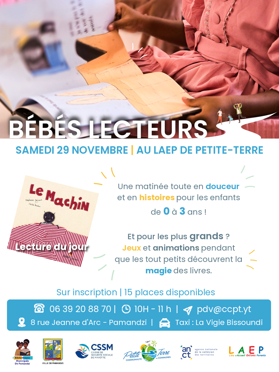 Le Lieu d’Accueil Enfants-Parents (LAEP) de Petite-Terre a le plaisir d’inviter les familles à une nouvelle séance du dispositif “Bébés Lecteurs”, qui se tiendra ce samedi 29 novembre 2025, de 10h à 11h, au 8 rue Jeanne d’Arc à Pamandzi.
