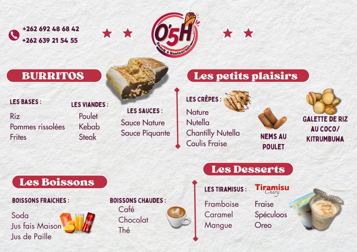 Que vous soyez de passage pour explorer la presqu’île, profiter des plages ou rencontrer les artisans du coin, O’5H vous accueille à toute heure pour recharger vos batteries. Dégustez-y un bon petit déjeuner le matin avec leur jus maison frais ou boisson chaude. Le service chaleureux et l’ambiance détendue du lieu vous donneront envie de prolonger la pause, le temps de goûter à la douceur de vivre à Mtsamboro.